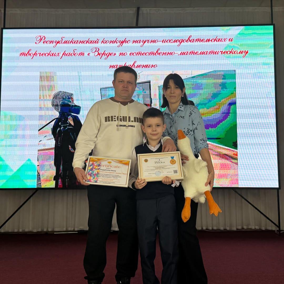 Сегодня мы с особой гордостью провели торжественную встречу победителя ХХІ Республиканского конкурса научно-исследовательских и творческих работ «Зерде» — учащегося 4 «Б» класса Поддубного Ивана, занявшего I место по естественно-математическому направлению.