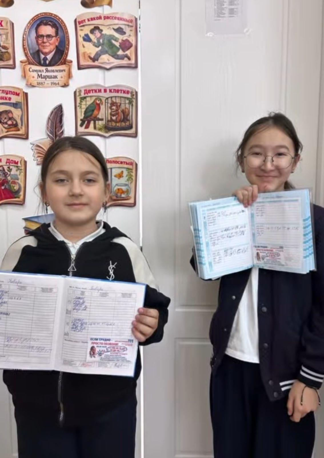 Школьники вклеили визитки в свои дневники, чтобы всегда иметь под рукой важные контакты и при необходимости обратиться за поддержкой.